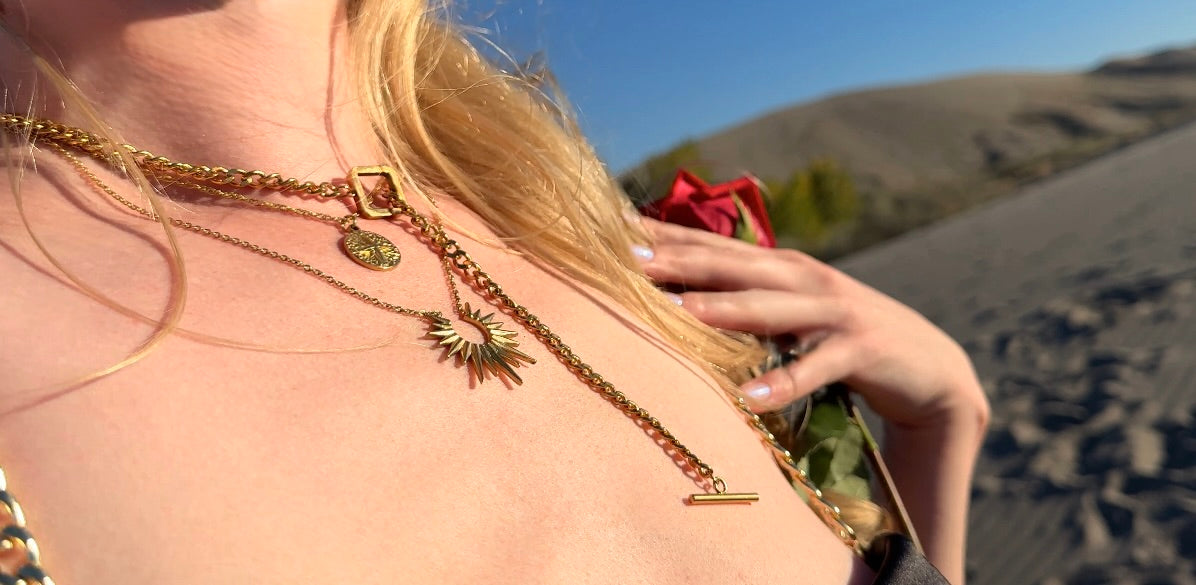 Our pieces are crafted with high-quality, hypoallergenic stainless steel and finished in durable 18k gold plating. Every piece is made to shine long-term — tarnish-resistant, water-safe, and designed for daily wear.